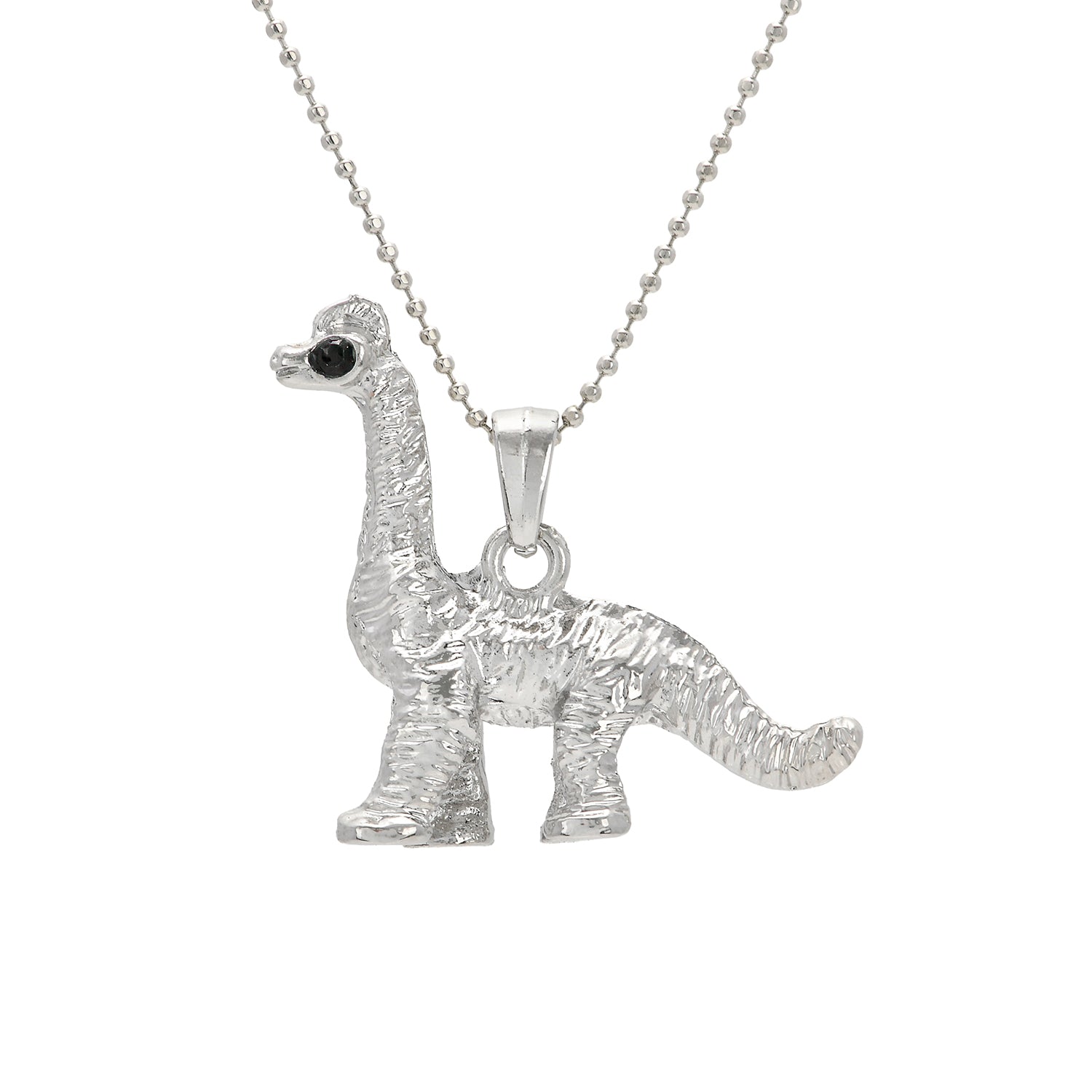 SILVER BALL CHAIN NECKLACE WITH SILVER DINOSAUR