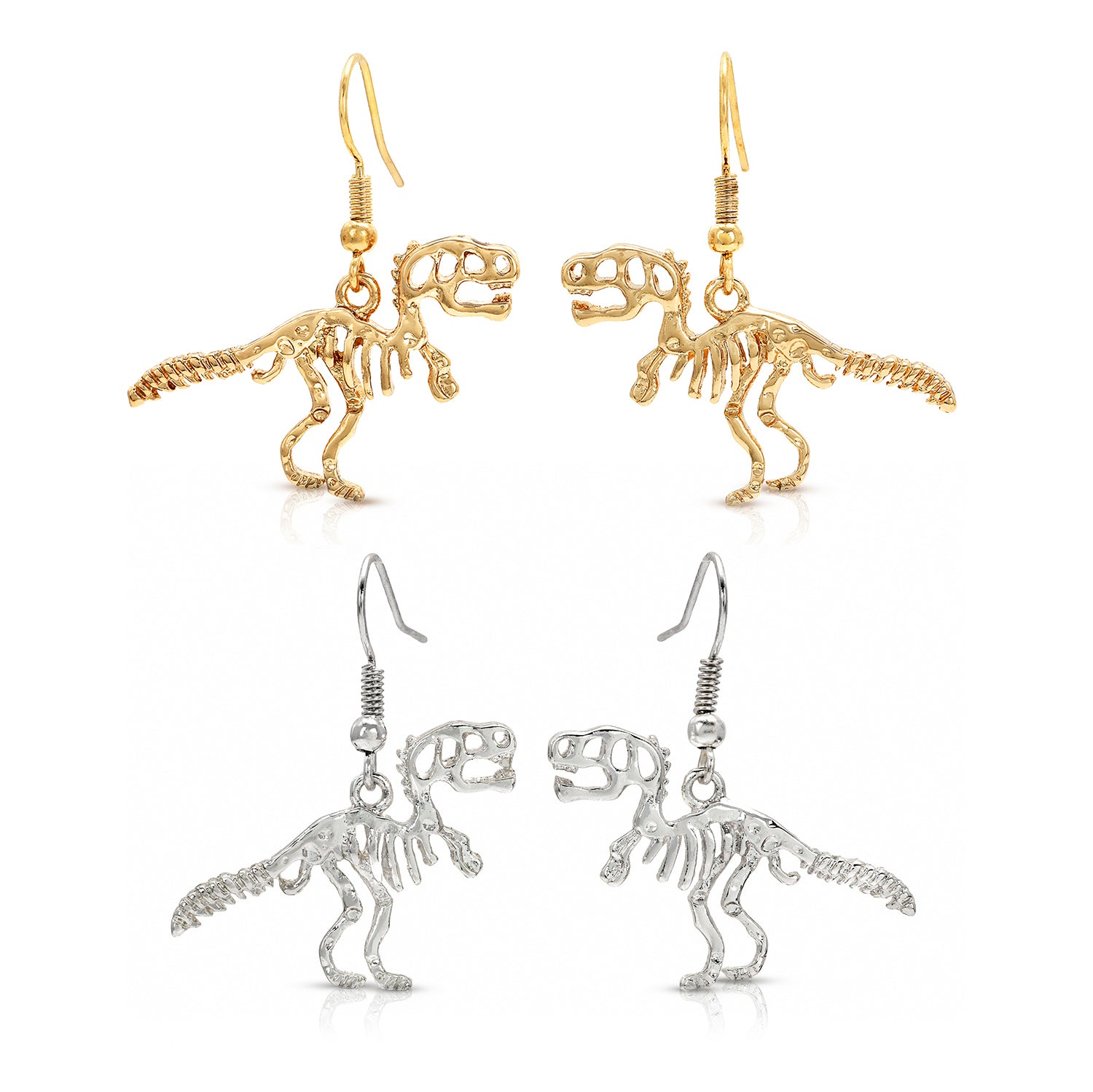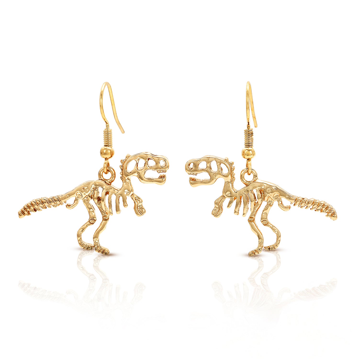 FISH HOOK EARRINGS WITH DINOSAUR SKELETON PENDANT