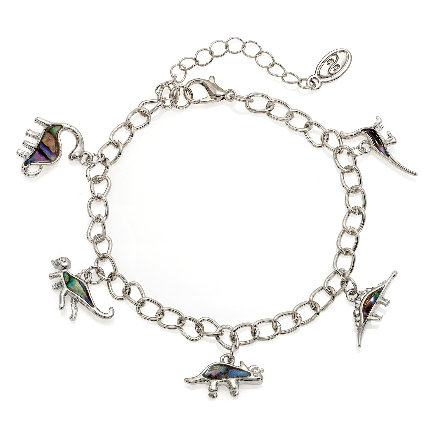 SILVER BRACELET WITH PAUA SHELL & SILVER DINOSAURS