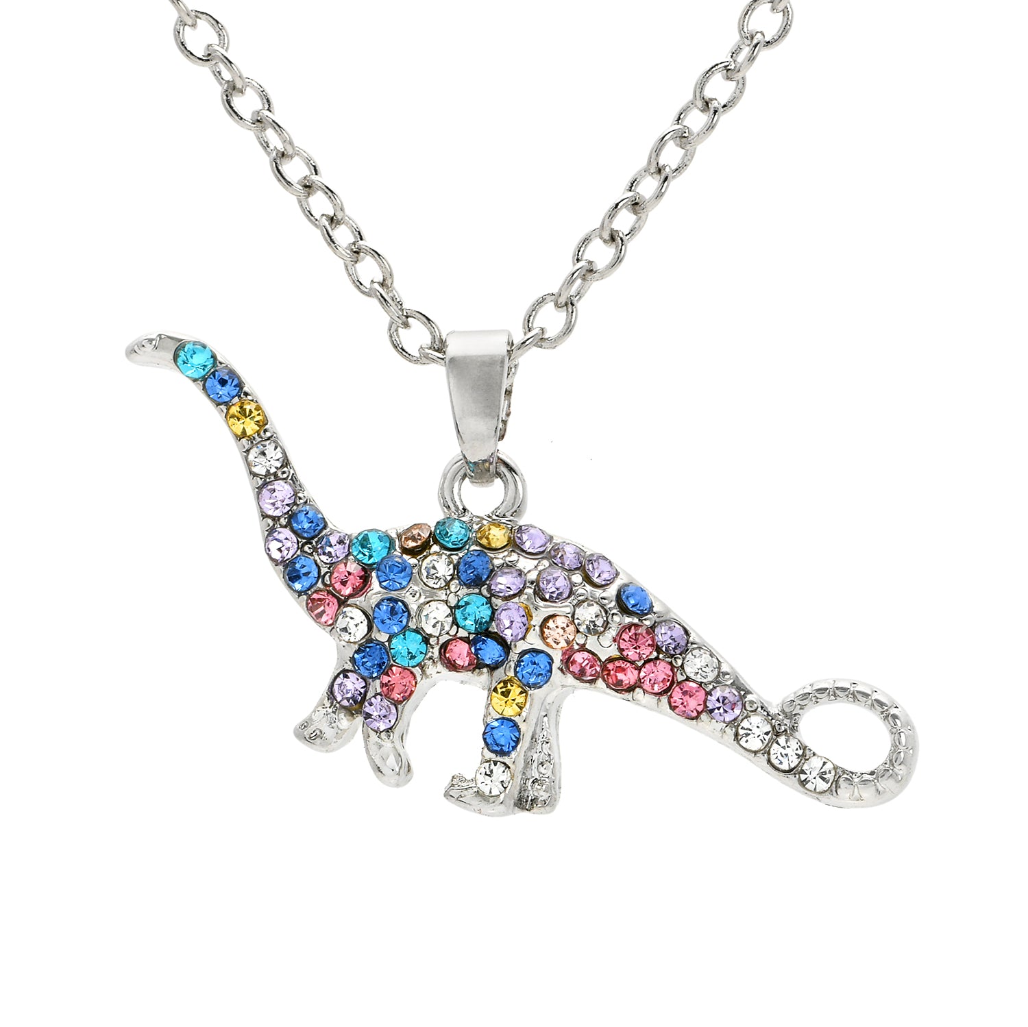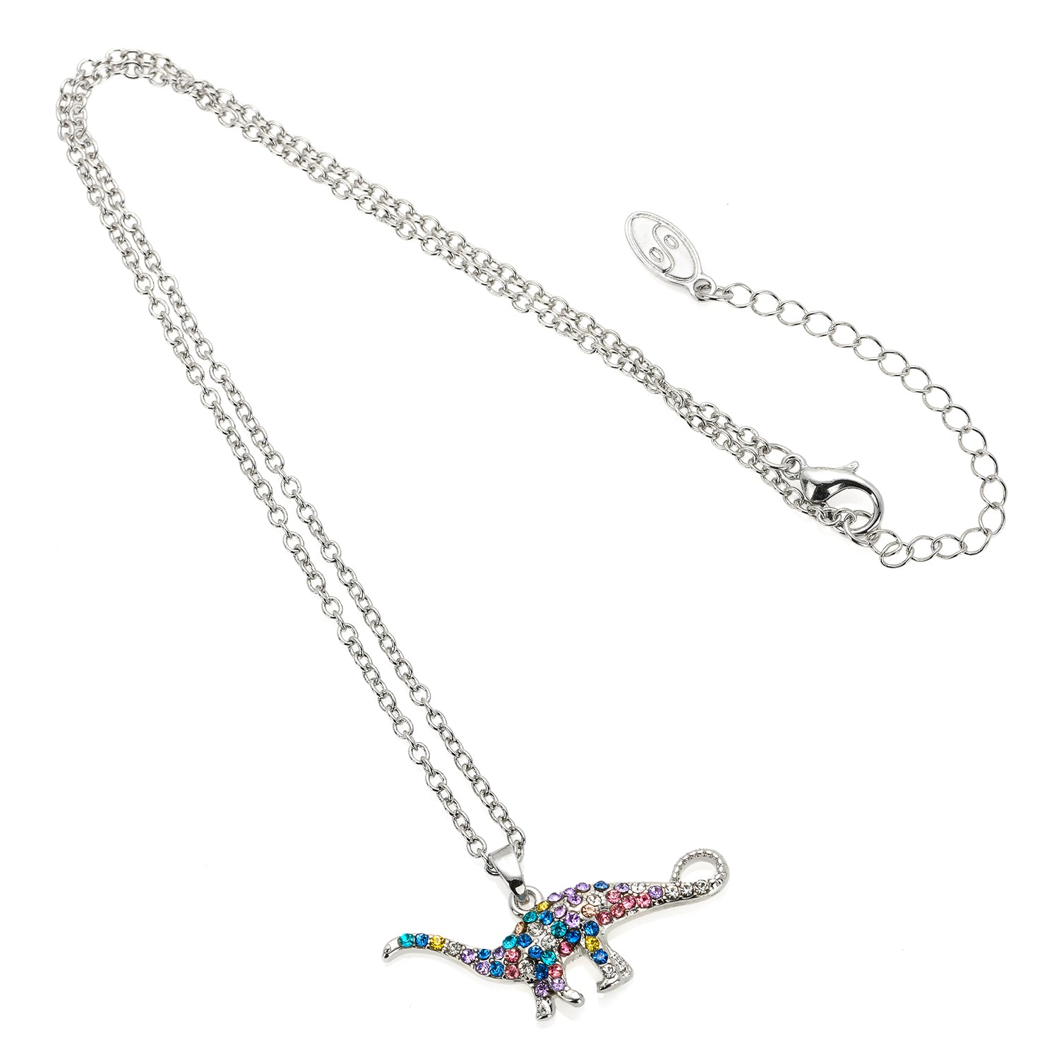 LINK CHAIN NECKLACE WITH PASTEL RHINESTONE BRONTOSAURUS PENDANT
