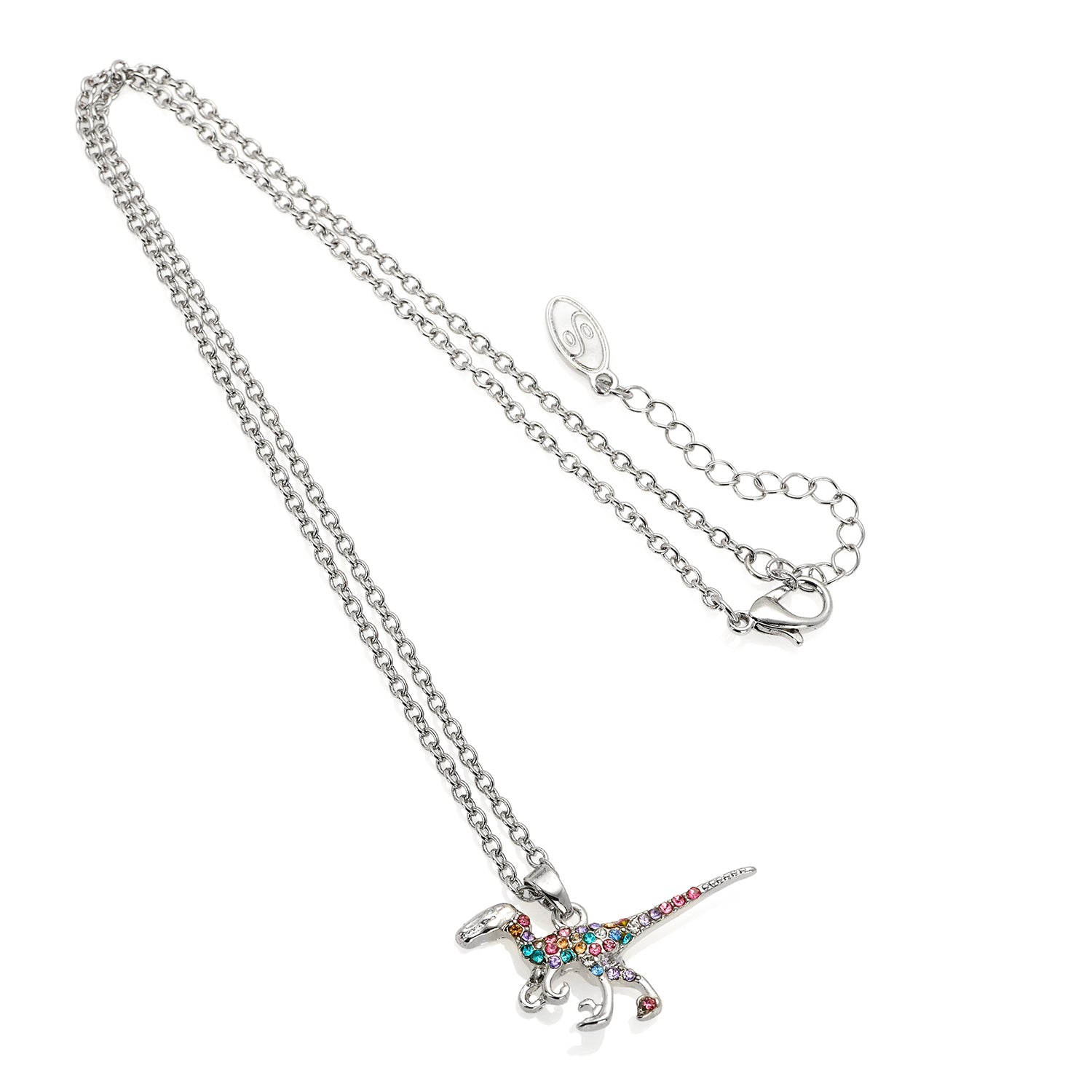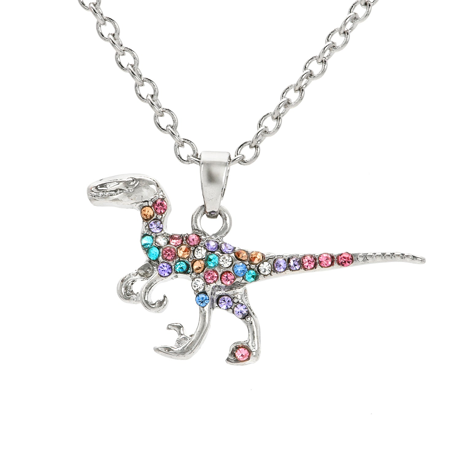 LINK CHAIN NECKLACE WITH PASTEL RHINESTONE RAPTOR PENDANT