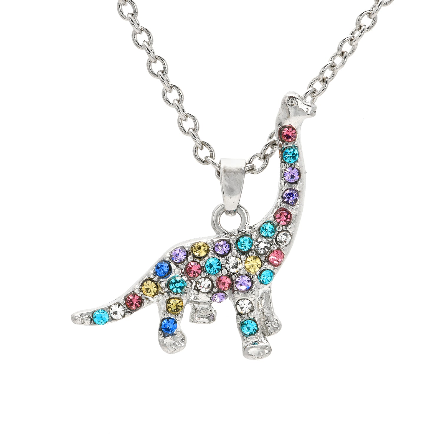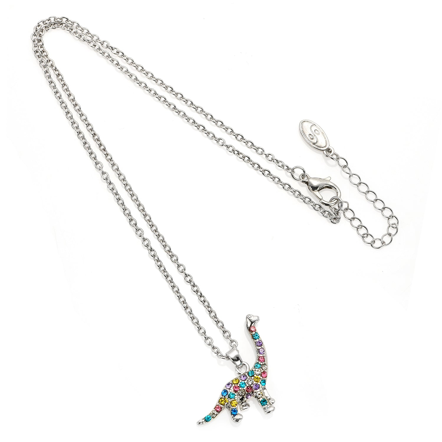 LINK CHAIN NECKLACE WITH PASTEL RHINESTONE BRONTOSAURUS PENDANT