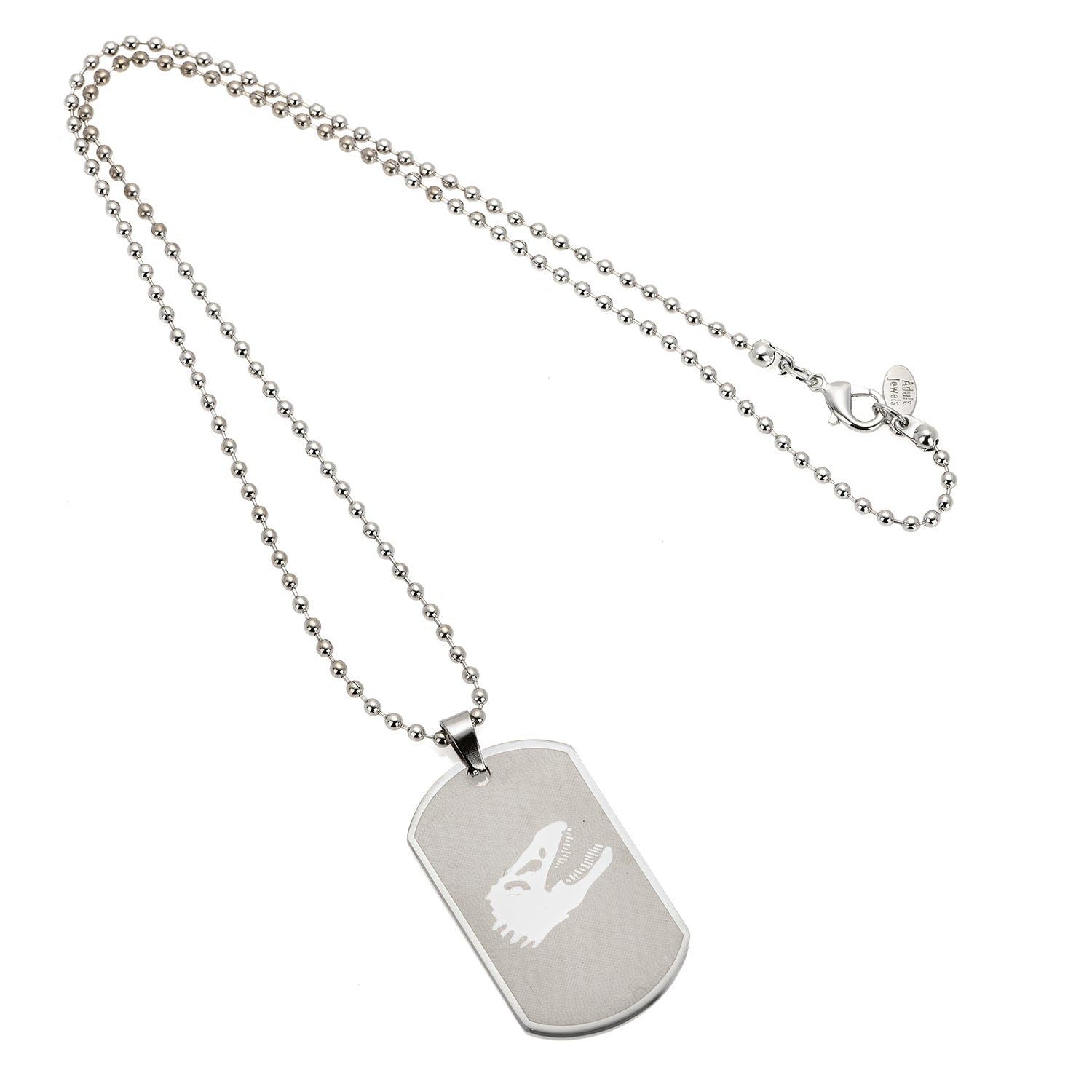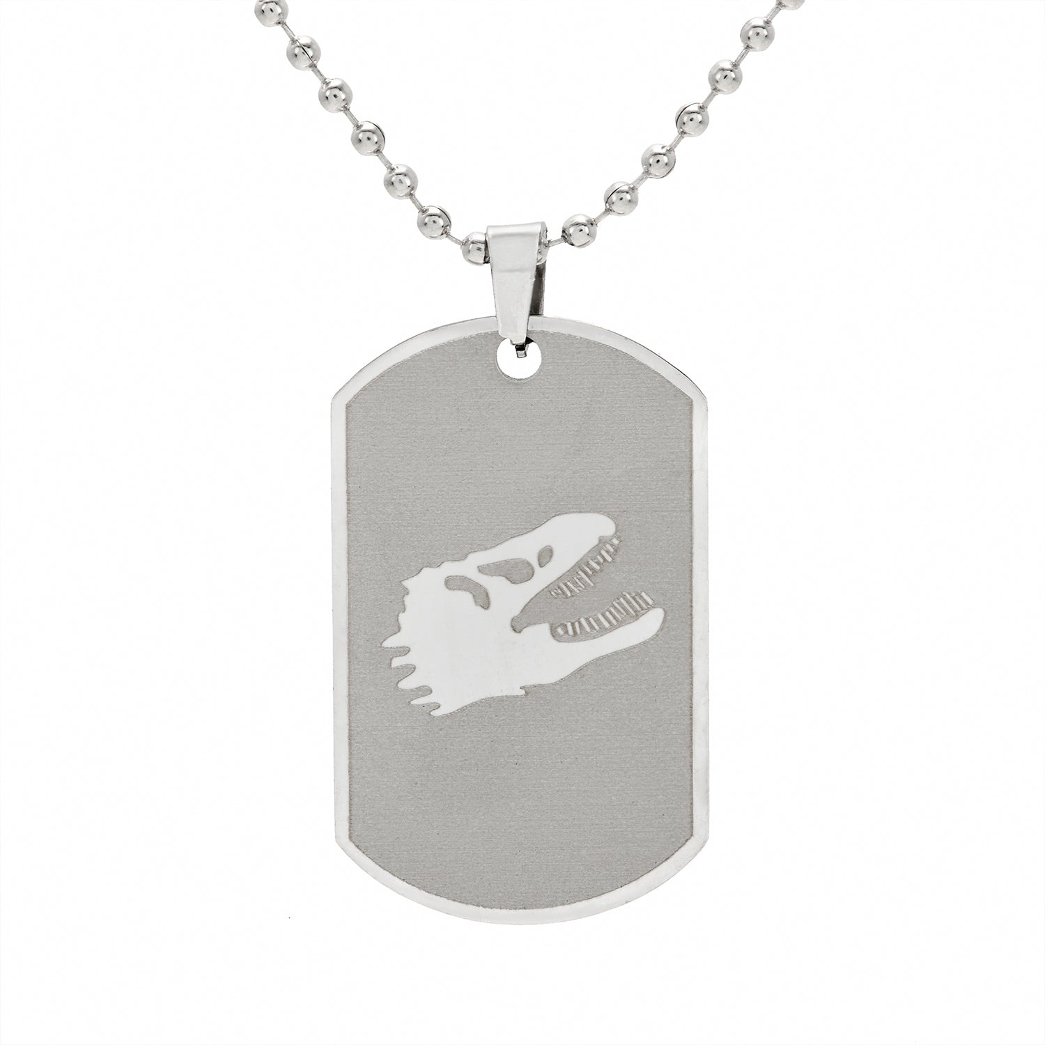 SILVER BALL CHAIN NECKLACE WITH STAINLESS STEEL DINO DOG TAG